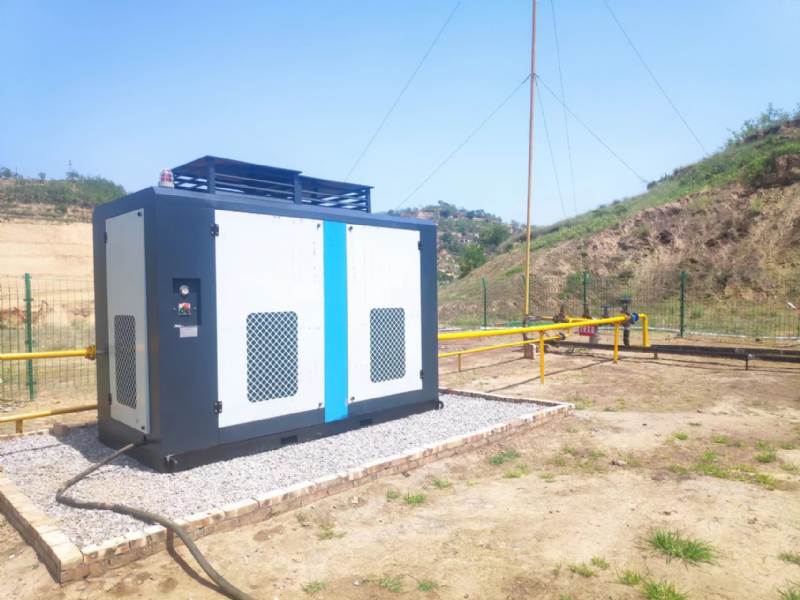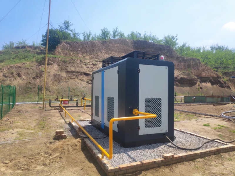 山西富地燃气集团40井场,由于井场位置位于山坳内,输送管线斜向上方进行输送,在未安装压缩机组时,产气量8000方/天,管输压力0.21MPa,在安装压缩机组后,采用微负压排采,产气量12000方/天,根据现场情况在出口处安装一缓冲罐,使管道内凝结水可以通过缓冲罐排出,不增加管压或造成管堵,管输压力为0.13MPa,进气压力-0.01MPa,大大提高了煤层气排采效率。
